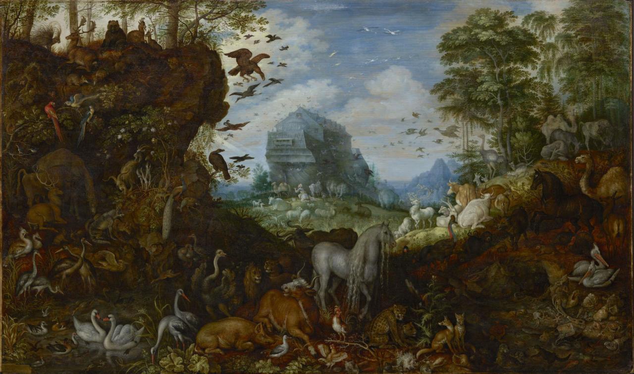 De mooiste ark van Noach is nu in Dresden te zien op de tentoonstelling Het Paradijs op aarde. Het schilderij Voor de zondvloed van Roelant Savery (1576-1639) is een kleurrijk, panoramisch paneel waarop alle dieren ter aarde zich verzamelen om de ark binnen te gaan. Maar eerst poseren ze nog even voor de schilder. Op de voorgrond, in de bruinige schaduwen van rotsen en bomen, zien we vossen en pelikanen, rendieren en wolven, pauwen en papegaaien. Als hofschilder van Rudolf II had Savery toegang tot de keizerlijke menagerie in Praag, en dat gaf hem de unieke mogelijkheid om exotische dieren zoals olifanten, struisvogels en leeuwen in het echt te aanschouwen. De meeste dieren op dit schilderij zijn dan ook zoölogisch te herleiden en Savery schilderde hier meer dan honderdvijftig soorten.