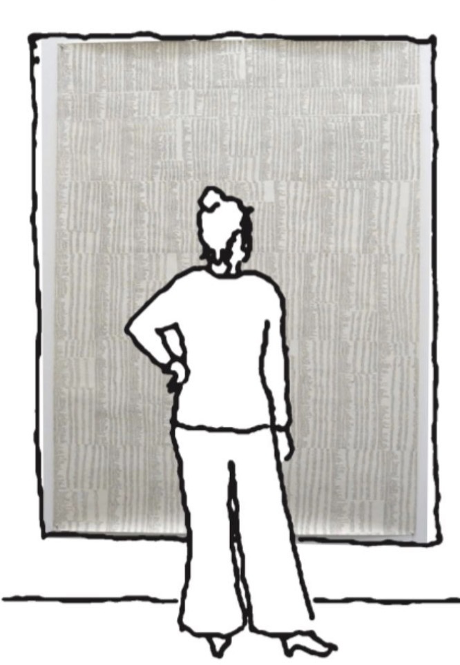 Houdt u ook zo van kijken naar mensen die kijken? Ik wel. Daarom kocht ik vorige week deze geweldige tekening van Wouter Overhaus. Drie kijkers in een museumzaal bewonderen een werk van Keith Haring.